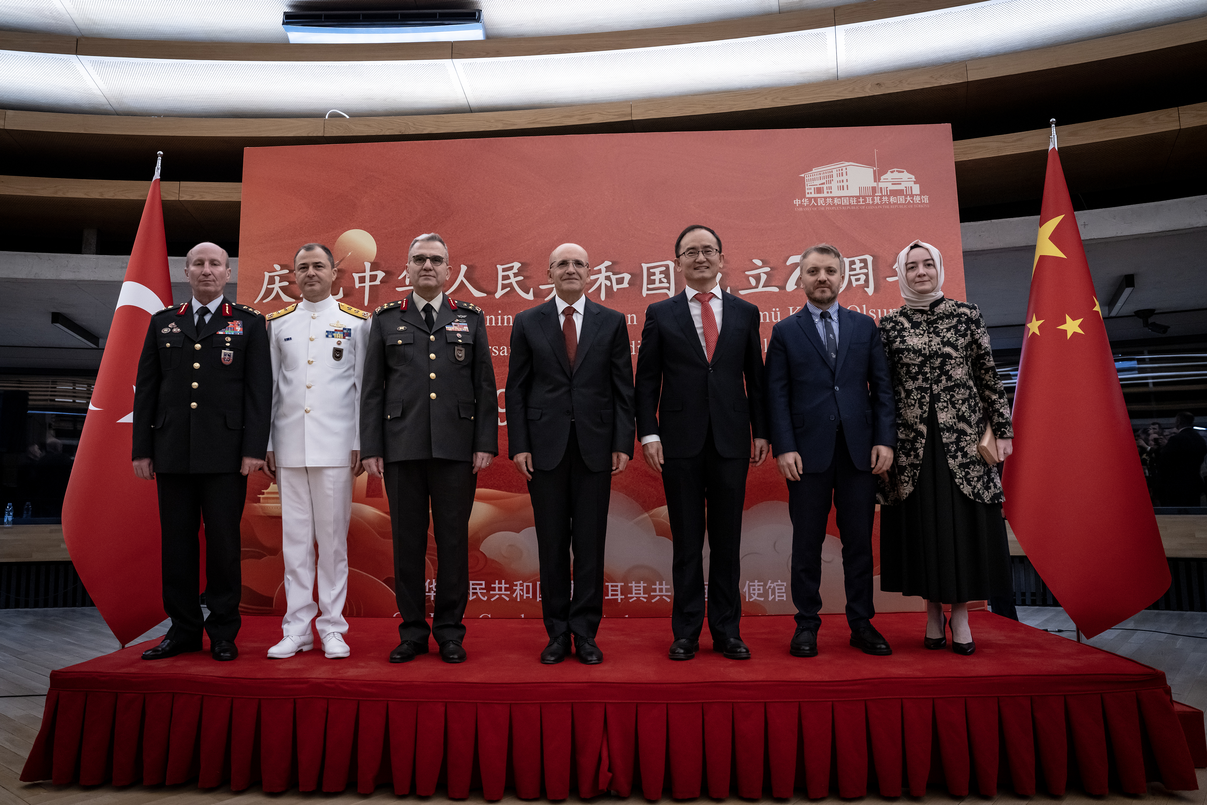 Çin'in kuruluşunun 76. yıl dönümü Ankara'da özel resepsiyon ve dans gösterileriyle kutlandı. Çok sayıda davetlinin yer aldığı resepsiyona Hazine ve Maliye Bakanı Mehmet Şimşek de katıldı. Şimşek, “Belirsiz ve zorlu zamanlarda yaşıyoruz, bu da Türkiye ile Çin arasında daha yakın iş birliğini gerektiriyor.” dedi.